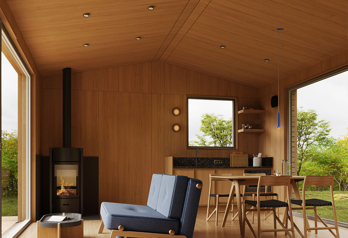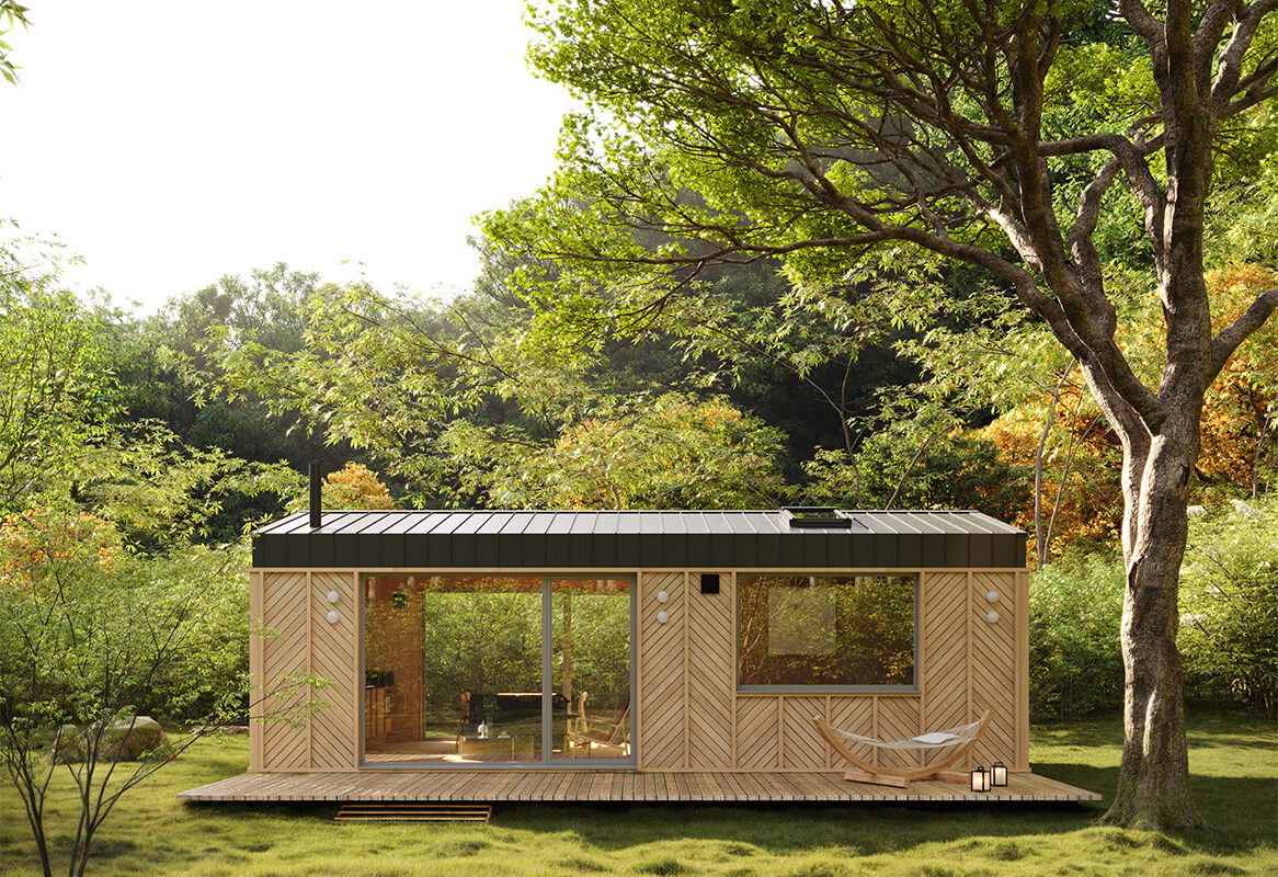- Hinterlüftete Fassade aus thermisch behandeltem Kiefernholz von Lunawood