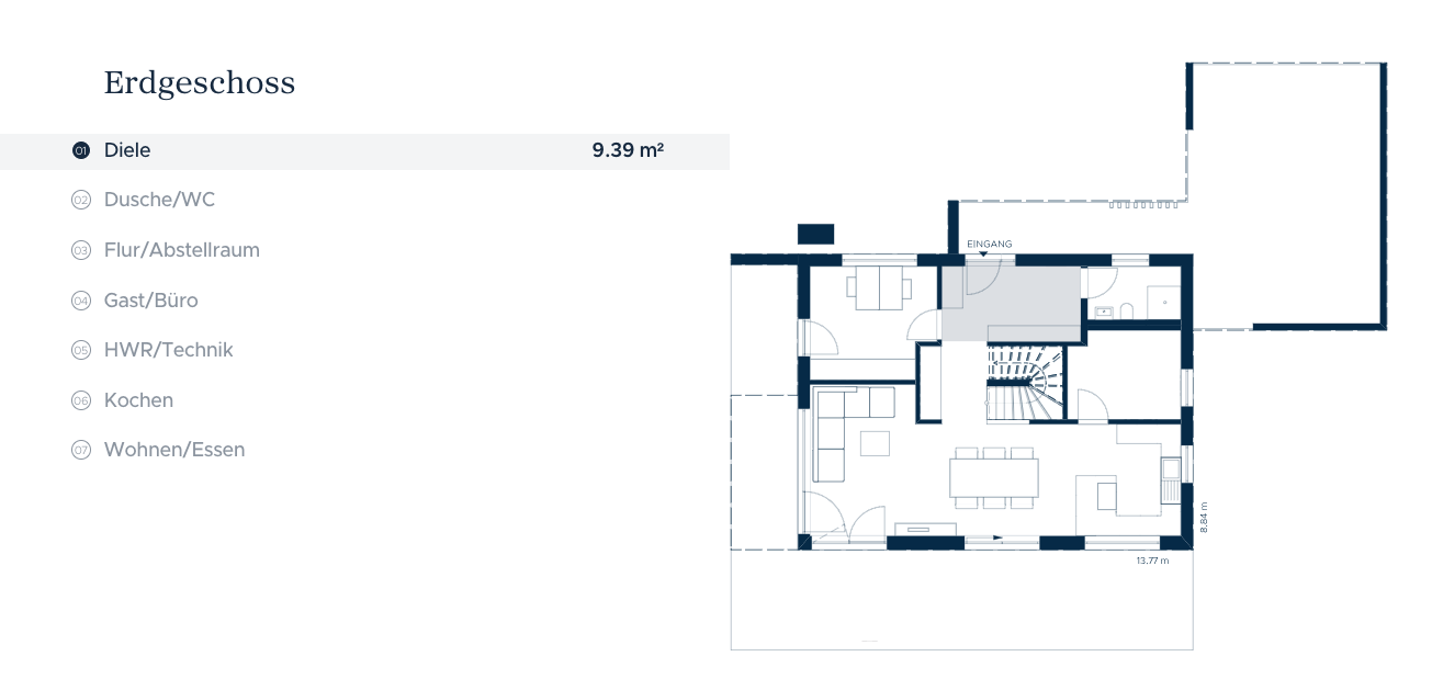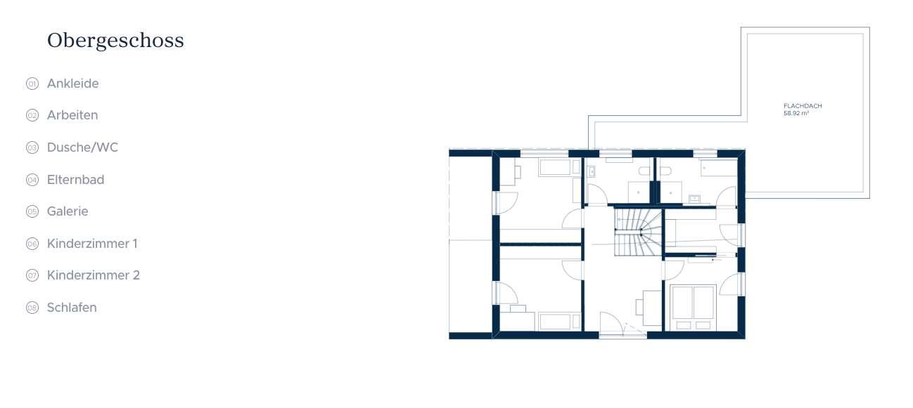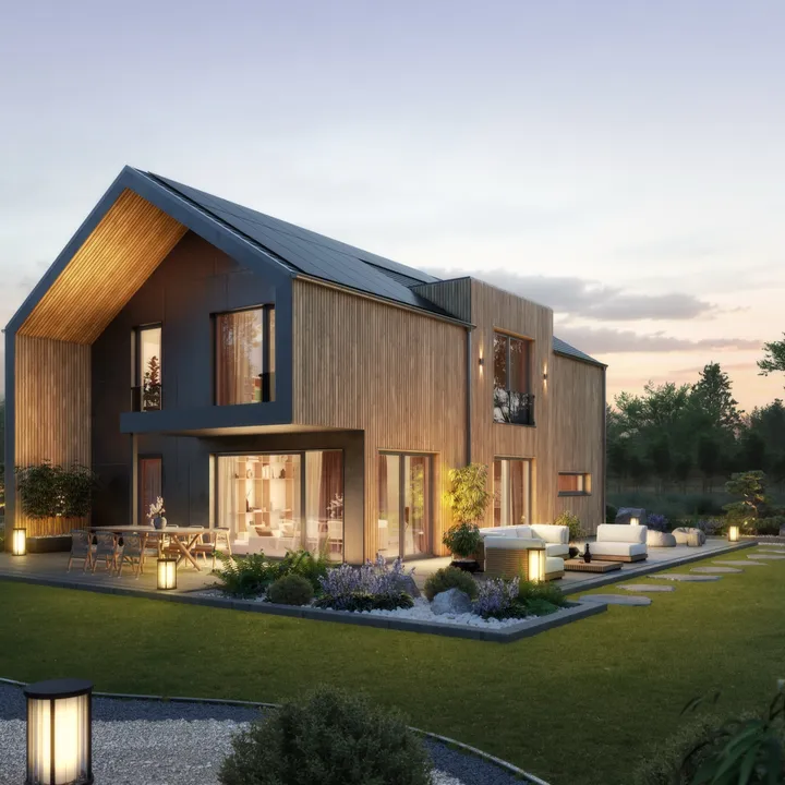 Concept 5 ist die zeitgemäße Antwort auf ein Leben mit Stil und Struktur. Der Entwurf spielt mit klaren Linien, einem Satteldach als Referenz an klassische Architekturen und einer harmonischen Fassadenkombination aus Holz und Putz. Die Formsprache ist reduziert – die Wirkung maximal. Es entsteht ein Haus, das durchdacht ist bis ins letzte Detail: für Menschen, die Qualität sehen und Raum spüren wollen.