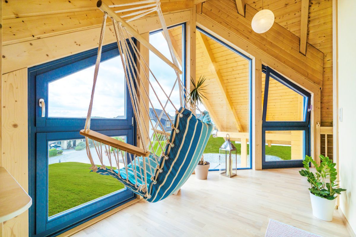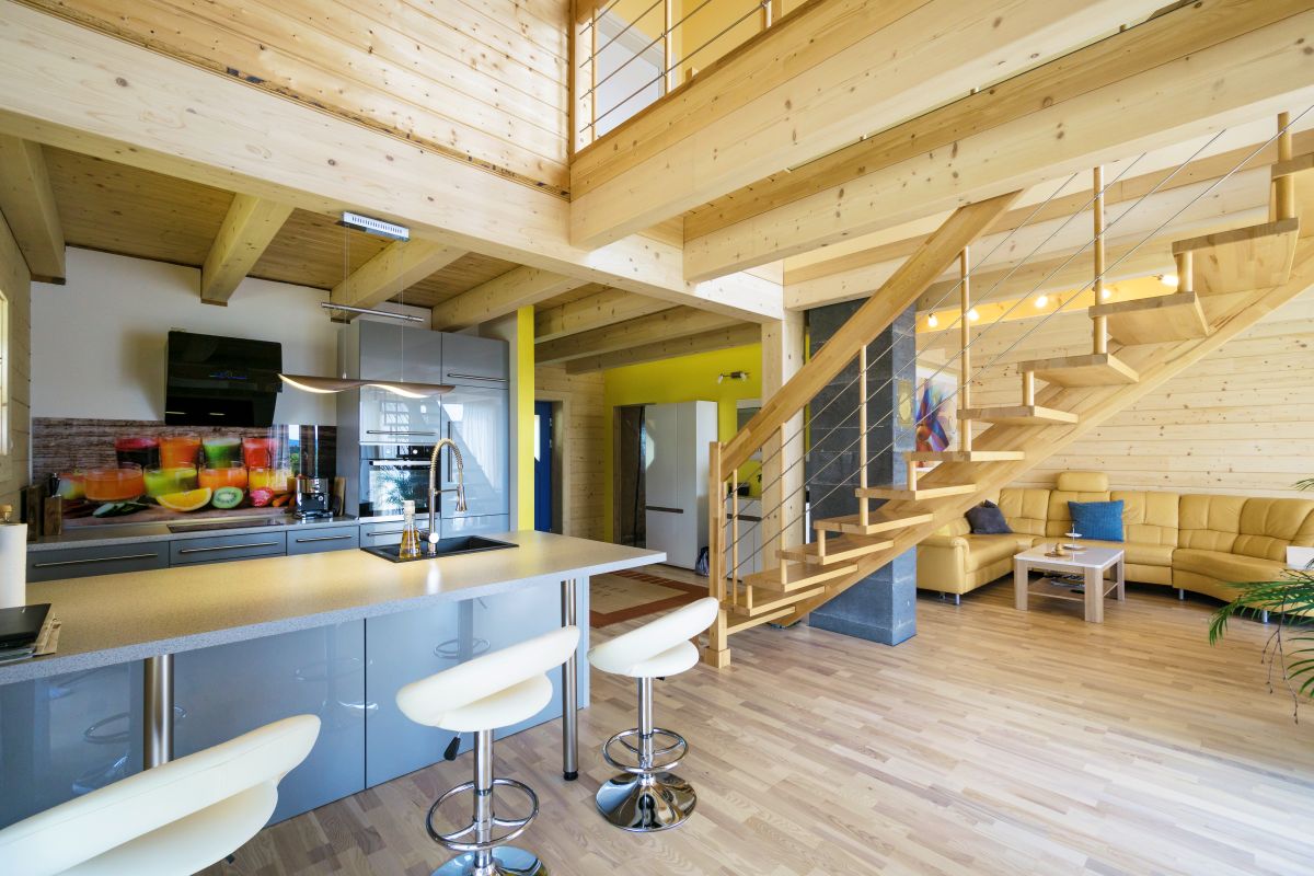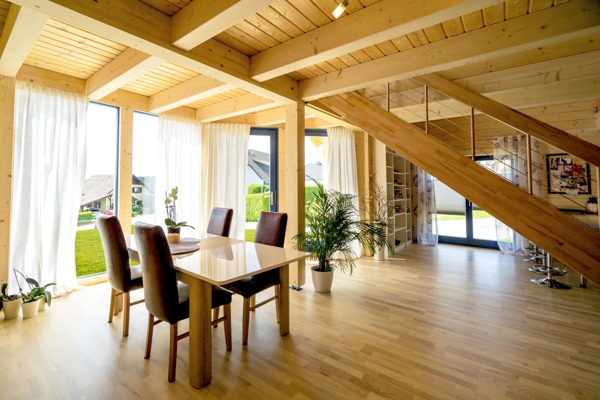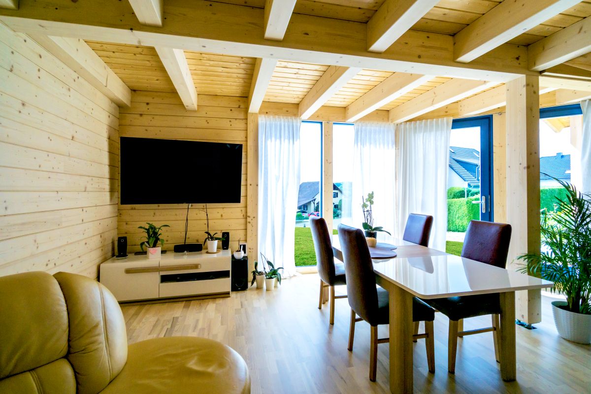 Die Raumaufteilung ist durchdacht, funktional und aufs Wesentliche konzentriert. Auf rund 125 m² Wohnfläche bietet das Holzhaus ausreichend Platz zur persönlichen Entfaltung.