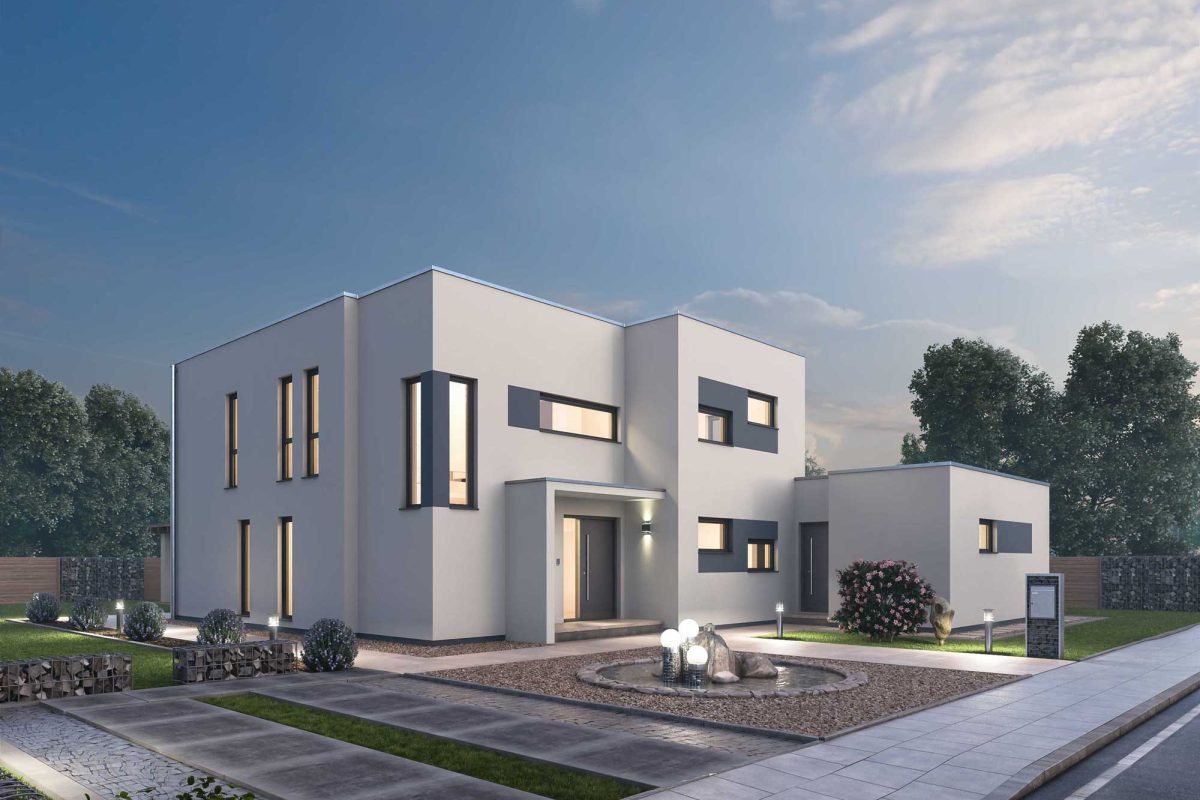 Das Mehrgenerationenhaus MGH 232 ist ein modernes Haus im Bauhausstil, das mit zwei abgeschlossenen Wohneinheiten in versetzt angeordneten Kuben geplant ist. Der Grundriss des MGH 232 basiert auf drei rechteckigen Kuben. Die Hauptwohnung erstreckt sich über zwei Kuben und bietet mit ihren rund 162 m² Wohnfläche Platz für die gesamte Familie. Die zweite Wohnung im dritten Kubus verfügt über rund 54 m² Wohnfläche und eignet sich aufgrund ihrer Lage im Erdgeschoss bestens für die Unterbringung der Großeltern, aber natürlich alternativ auch zur Vermietung an Singles oder Paare. Die schlichte Fassade besticht durch die über Eck angeordneten Fenster und die ansprechenden Fassadenrücksprünge. Die versetzte Anordnung der Kuben bietet viel Raum für eine außergewöhnliche Vorplatzgestaltung.