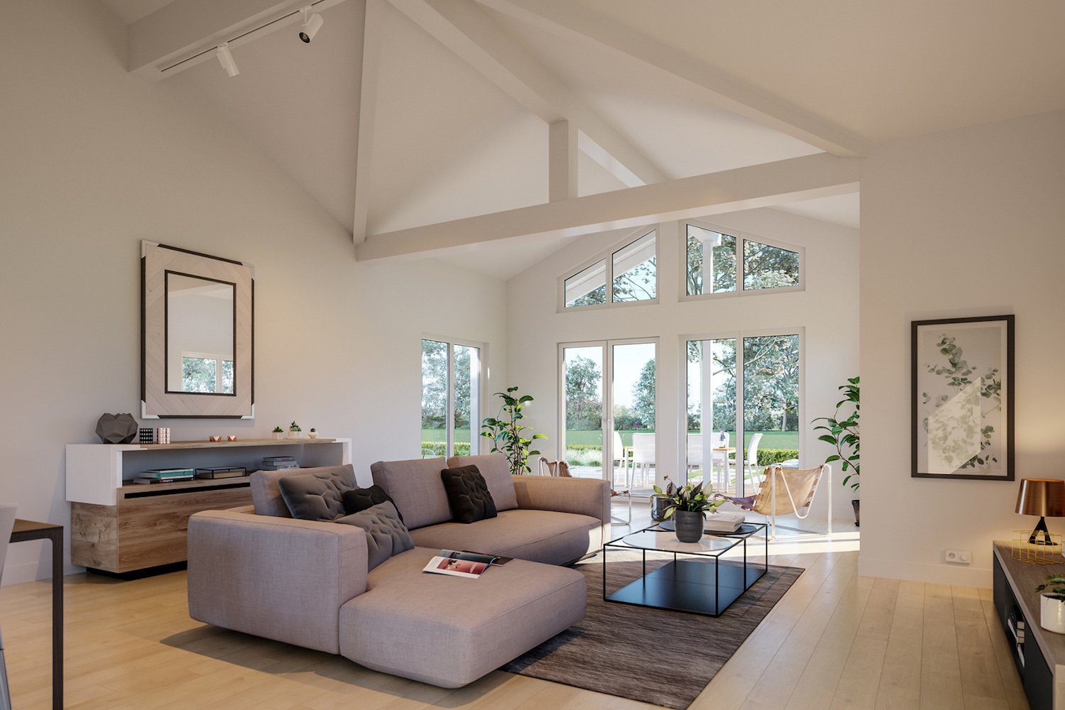 AMBIENCE 100 bietet unglaubliche Vielfalt und Flexibilität. Vom klassischen Walmdach-Bungalow über den mediterranen Stil bis hin zur ein- oder zweigeschossigen Designer-Variante ist architektonisch alles möglich. Unterschiedliche Größen und zahlreiche Architektur-Bauteile wie Erker oder Querhaus bieten weitere Variabilität und schaffen zusätzlichen Raum. Auf 100 m2 lassen sich so überzeugende individuelle Grundrisslösungen realisieren.