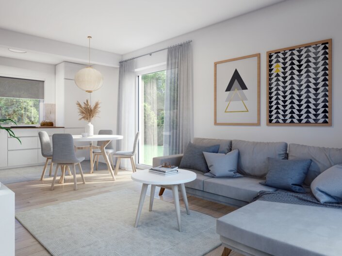 Der Bungalow Family 65 bietet mit seiner modernen, minimalistischen Gestaltung und seinen klaren Linien attraktiven Wohnraum für Singles oder Junggebliebene, die in den eigenen vier Wänden leben wollen. Aber auch als Ferienhaus ist der Minibungalow aus dem Familyprogramm bestens geeignet. Das helle Interieur mit großen Fenstern zum Garten verbindet Innen- und Außenbereiche nahtlos. Auf ca. 65 m² finden sich ein offener Wohn- und Essbereich, eine separate Küche, zwei gemütliche Schlafzimmer, ein Duschbad sowie ein Technikraum. Klein, fein, mein – so lässt sich dieses eigene Familyhaus auf den Punkt bringen.