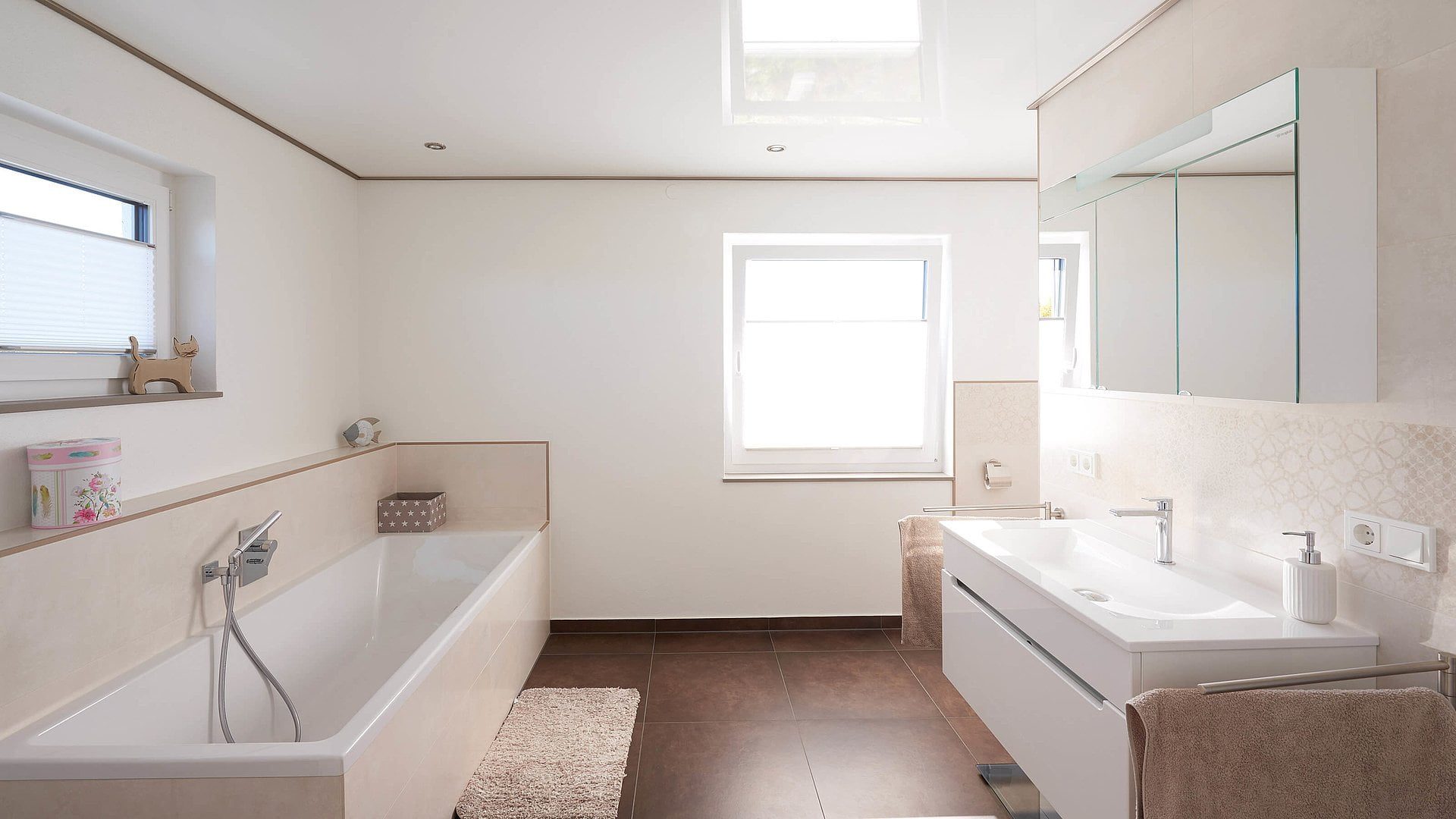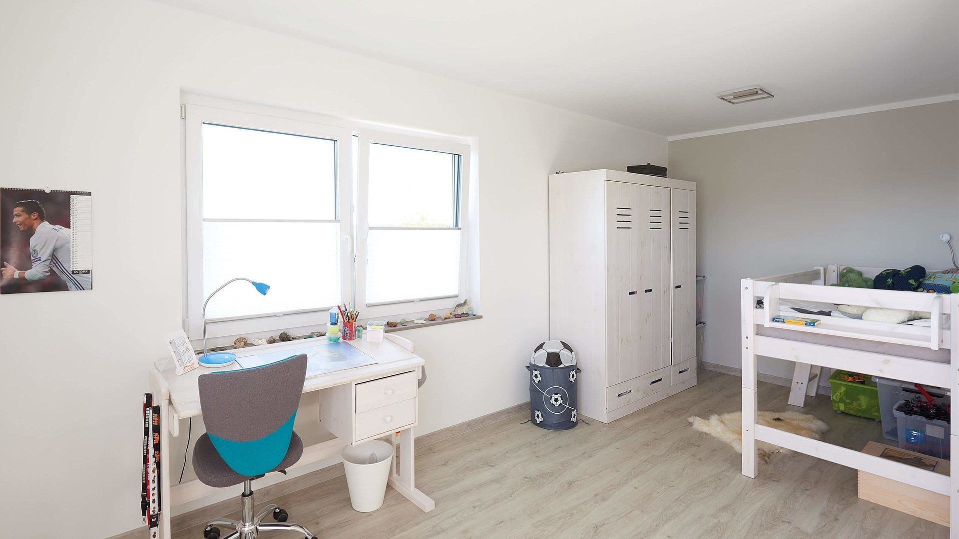 Große Fenster und die offene Wohnraumgestaltung charakterisieren das Haus Tero. Zwei Vollgeschosse werden allen Wünschen der Bewohner mehr als gerecht. Gerade der große Wohn-/Essbereich sorgt für ein gemütliches Zusammensein der gesamten Familie und stellt den Lebensmittelpunkt dar. Im Erdgeschoss findet sich außerdem ein Büro, der Hauswirtschaftsraum und ein Gäste-WC.