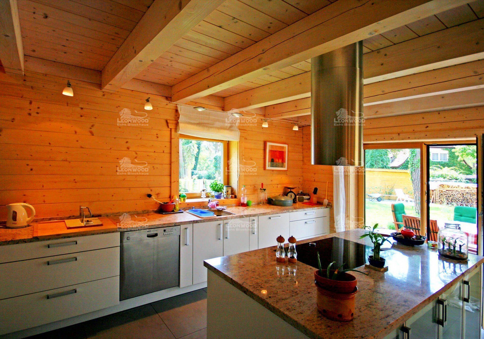 In Bezug auf seine ökologischen und wohngesunden Aspekte ist das Blockhaus Feodora von LéonWood® wirklich ein kleines Geschenk Gottes. Ob in der Rundstamm-Ausführung oder mit der abgebildeten Biodoppelwand® (Blockbohlen mit inne liegender Korkschicht) von LéonWood®, es kommen nur natürlich nachwachsende Rohstoffe zum Einsatz.