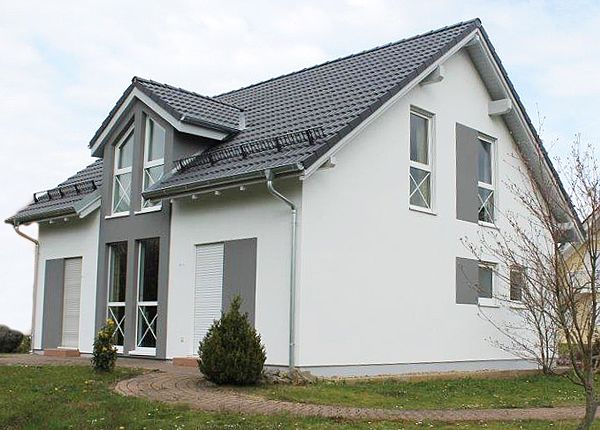 Das attraktive Haus bietet für kleine und große Familien großzügige Raumverhältnisse und ermöglicht dank der vielen Glasflächen in der Fassade ein wohltuendes Leben Dank viel Licht im Inneren des Hauses. Im Erdgeschoss befindet sich ein großes Wohnzimmer mit angeschlossenem Esszimmer und offener Küche. Genauso wie das Arbeits- bzw. Gästezimmer zu dem ein eigenes Dusch-WC gehört. Die Schlaf- und Rückzugsräume für die ganze Familie sind im Dachgeschoss. Hier bieten die drei großen Schlafzimmer und das Familienbad eine schöne Atmosphäre zum Entspannen und Wohlfühlen.
