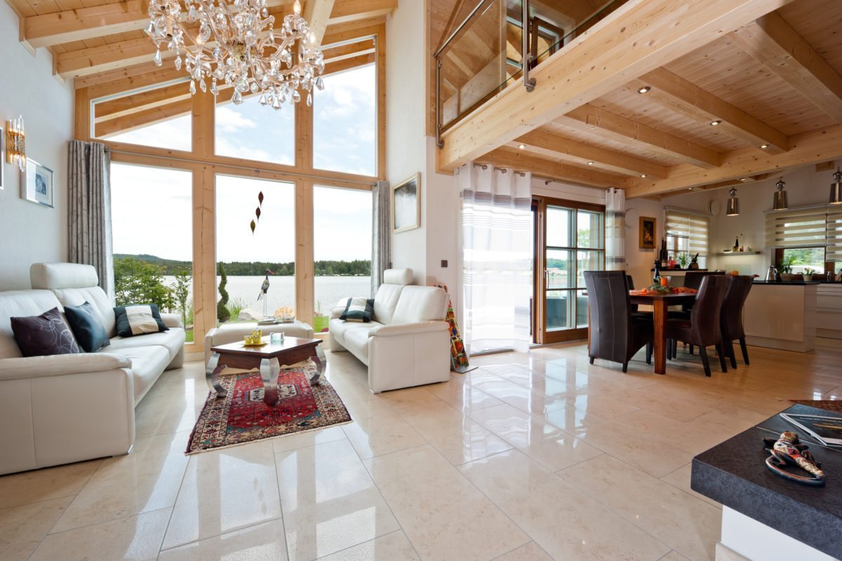 Inmitten der bezaubernden grünen Landschaft, direkt an einem kleinen See gelegen, hat sich dieser Bauherr eine grüne Oase der Ruhe geschaffen. Als leidenschaftlicher Wassersportler genießt er jeden Tag, den er am See verbringen kann. Die Natur, die Offenheit, der Einklang mit der Natur – das Haus liegt inmitten eines Naturschutzgebietes und sollte sich deshalb perfekt in die Umgebung einfügen. Der Bauherr hat sich aus diesem Grund für ein Blockhaus entschieden, das mit vielen Glasflächen den atemberaubenden Blick auf den See freigibt. Eine grüne Oase, die Tradition und Modernität perfekt verbindet.