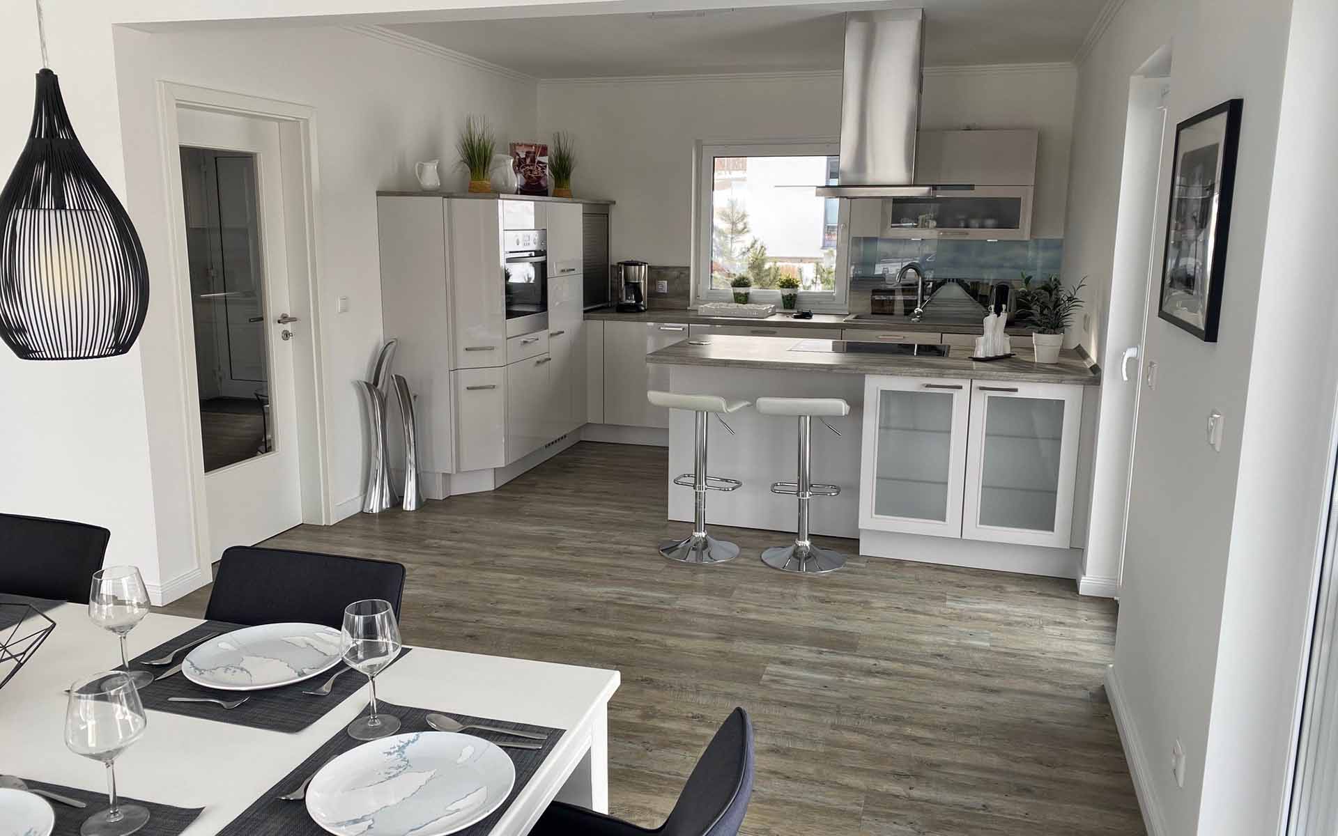 Das SH 136 punktet insbesondere durch seine vielen bodentiefen Fensterelemente, welche den offenen Koch-, Ess- und Wohnbereich hell und freundlich gestalten. Ein Schlafzimmer, zwei weitere Zimmer, ein Vollbad, Gäste-WC und Hauswirtschaftsraum sowie ein überdachter Hauseingang vervollständigen den Grundriss.