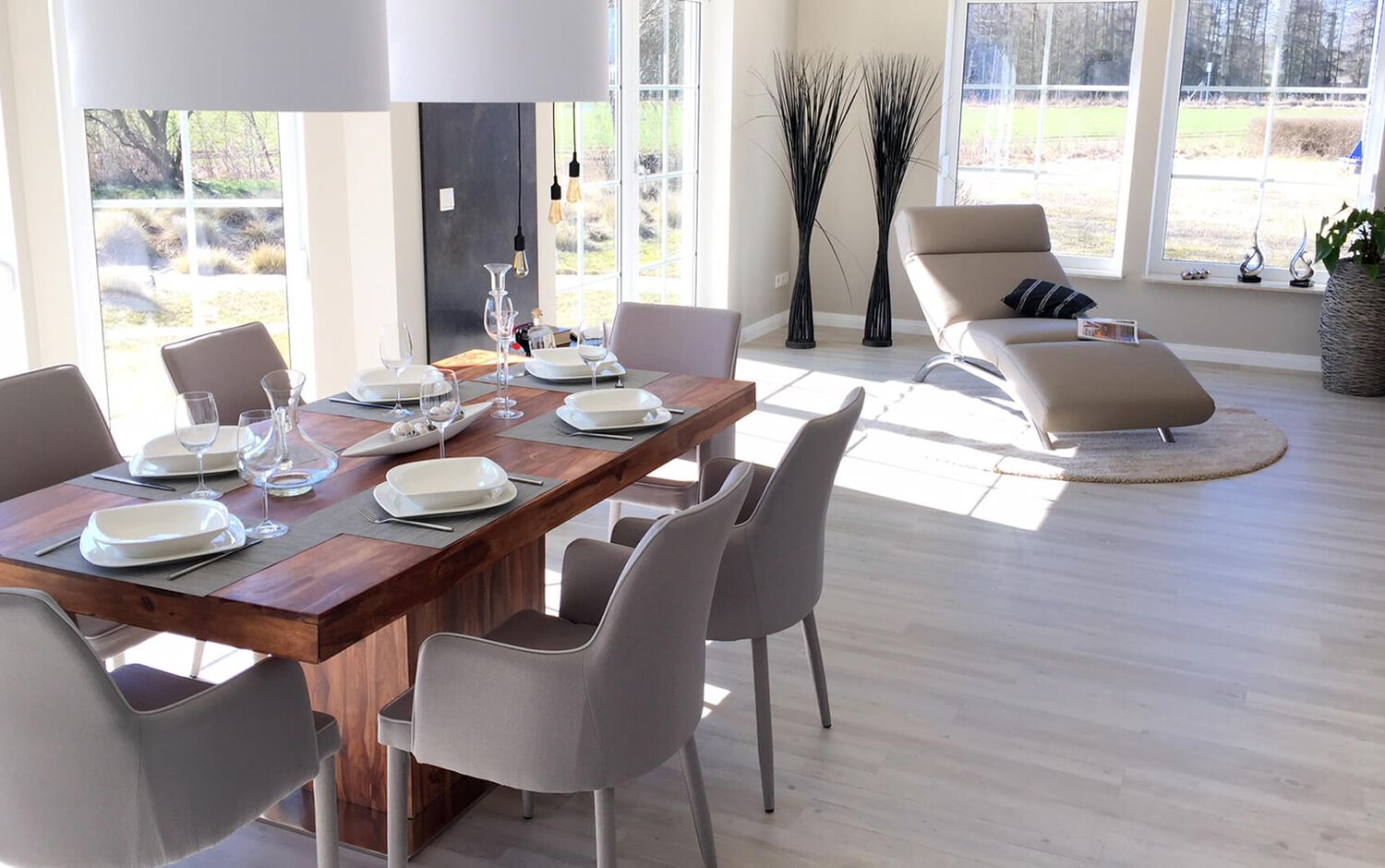 Eine Fünf-Zimmer-Lösung mit großem Wohn-, Koch- und Essbereich, drei weiteren Zimmern, einem Gäste-WV mit Platz für eine mögliche Dusche, Schlafzimmer mit separater Ankleide, Bad mit interessanter Waschtisch- und Duschlösung und einem großen Hauswirtschaftsraum. Zudem bieten praktische Nischenlösungen im Flur mehr Stauraum für dies und das.