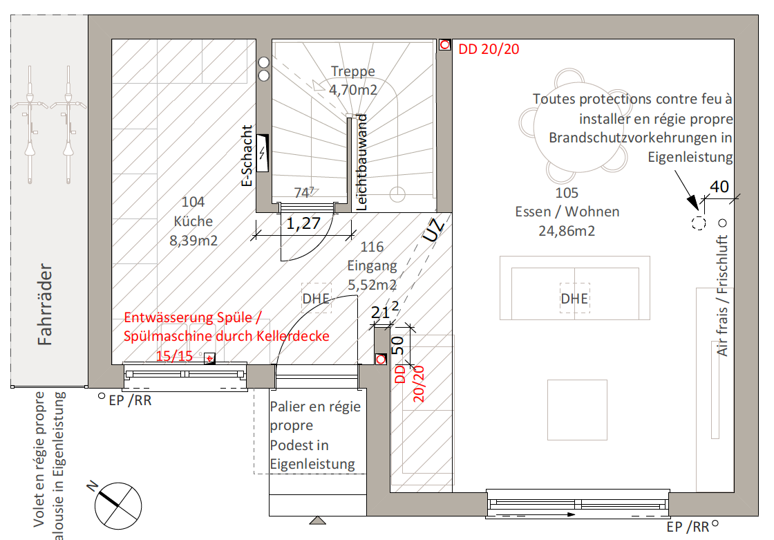 Beim Innenausbau wird auf wohngesündere Materialien Wert gelegt. Vom Einkauf – mit entsprechenden Anforderungen an das Produkt und Überprüfung der Datenblätter durch den werkseigenen Chemiker – über die eigene Fertigung mit Qualitätsmanagement bis hin zur Montage mit eigenen Leuten unterliegt der gesamte Ablauf der Kontrolle des Unternehmens.