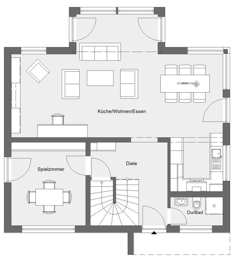 Durch die effiziente Haustechnik können die Bauherren sogar sparen: Die Photovoltaik-Anlage auf dem Dach erwirtschaftet im Jahresdurchschnitt mehr Energie als für Heizung und Warmwasser verbraucht wird, so wird das KfW-Effizienzhaus 55 gleichzeitig zum Plus-Energie-Haus. Flexibel für alle Fälle Der vielseitig nutzbare Grundriss ihres Eigenheims gibt Familie Stark Flexibilität für ganz unterschiedliche Lebensphasen: Möchte jedes der Kinder ein eigenes Zimmer bewohnen, kann Simona Stark ihr Arbeitszimmer im Erdgeschoss installieren. Oder eine Tochter mit Bedürfnis nach Unabhängigkeit lässt sich dort nieder. Und sollte es irgendwann nötig werden, kann sich das Ehepaar im Parterre barrierefrei auf einer Ebene einrichten, Schlafzimmer und Bad sind bereits vorhanden. So ist das Wunschhaus nicht nur für die Gegenwart maßgeschneidert, sondern sogar für die Zukunft bestens gewappnet.