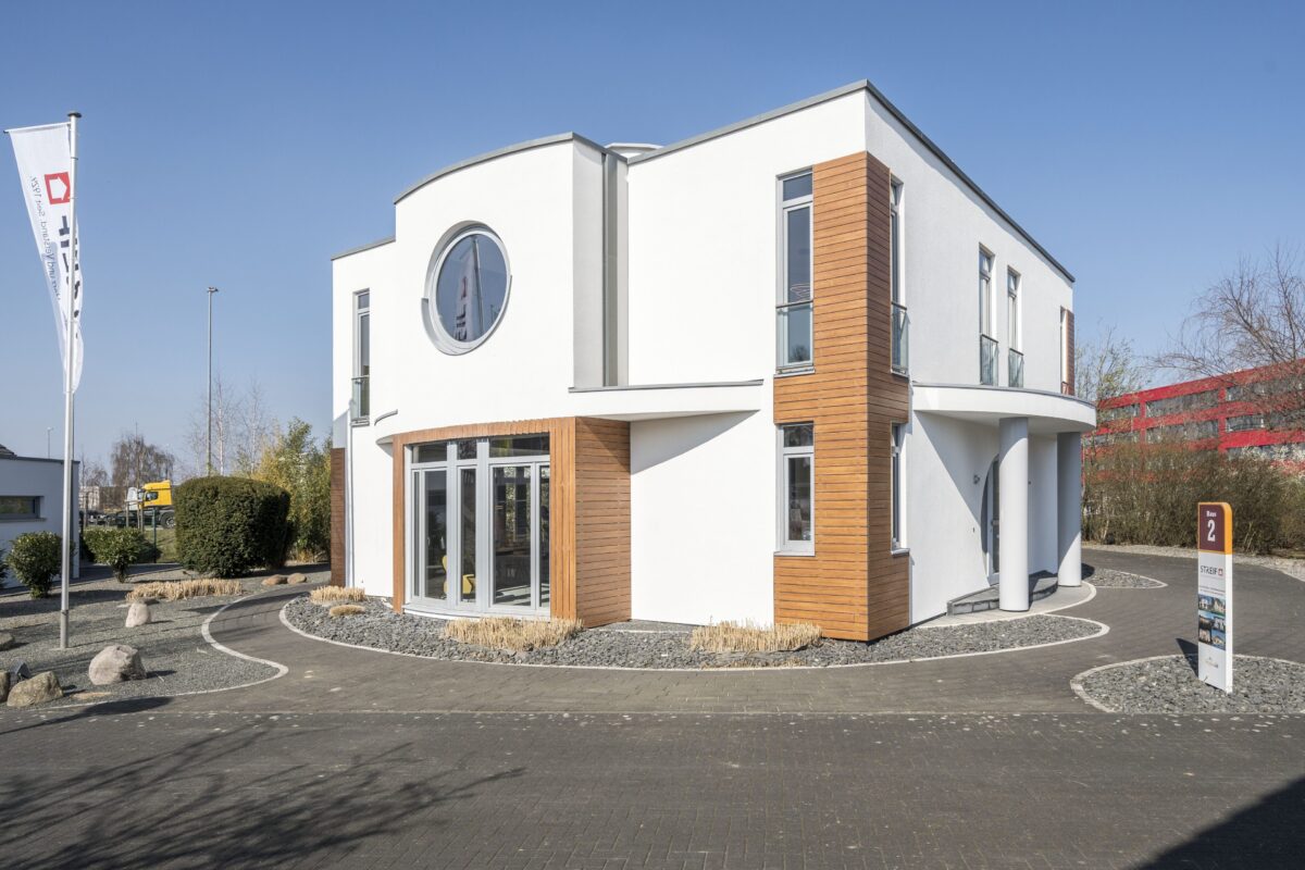 Das STREIF-Musterhaus in der FertighausWelt Hannover ist ein architektonisches Highlight und zählt zu den kreativsten Projekten im deutschen Fertighausmarkt. Mit seiner außergewöhnlichen Gestaltung zieht es sofort alle Blicke auf sich.