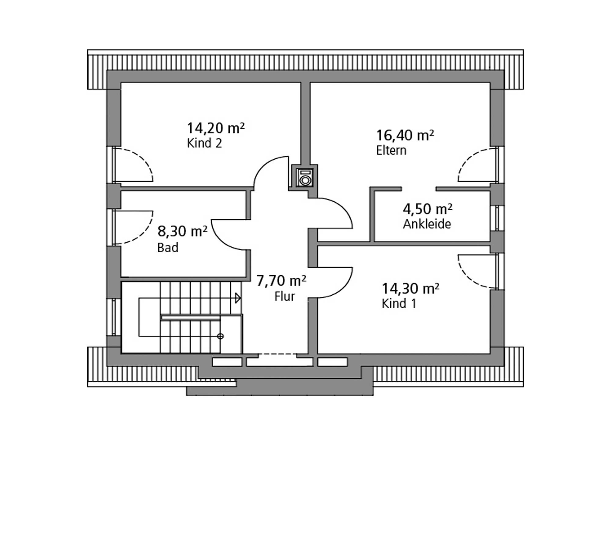 Dabei bleibt die generelle Aufteilung des Grundrisses stets gleich, es werden lediglich einzelne Annehmlichkeiten hinzugefügt und die Zimmer gewinnen an Wohnfläche. So können Sie je nach Ausrichtung und Größe Ihres Grundstücks die für Sie passende Hausgröße wählen, ohne bei der Inneneinrichtung Abstriche machen zu müssen.