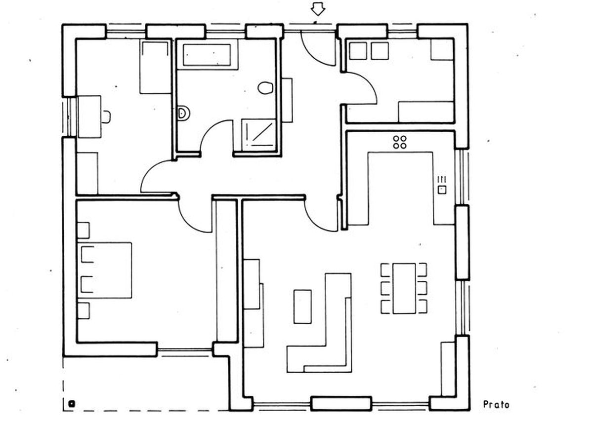 Beispiel Mini-Bungalow „Prato“: Ob Paar oder junge Familie: „Prato“ bietet seinen Bewohnern auf über 90 Quadratmetern viel Wohnkomfort und Entfaltungsmöglichkeiten. Zentrum ist der L-förmige, lichtdurchflutete Wohnraum mit integrierter Küche und Essplatz. Ein Schlafzimmer, ein großzügiges Bad sowie ein weiteres Zimmer, das als Arbeits-, Kinder- oder Gästezimmer nutzbar ist und der kompakte Technik- und Hauswirtschaftraum komplettieren das Raumangebot (siehe Grundriss). An sonnigen Tagen hat die teilweise überdachte Terrasse maximales Lieblingsplatz-Potenzial! Ab 325.400 Euro* kannst du „Prato“ inklusive Bodenplatte bekommen. Dieser Preis beinhaltet alle Bauleistungen – nur um Bodenbeläge, Innentüren sowie das Tapezieren oder Streichen der Innenwände musst du dich noch selbst kümmern. Welche baulichen Leistungen generell von deinem Fertighaushersteller übernommen werden, liest du in der sogenannten Bauleistungsbeschreibung.