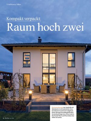 Der Artikel beschreibt das Fingerhaus Kundenhaus ‚Bravur 400-Stadtvilla‘, welches sich durch einen großzügigen und offenen Wohnbereich auszeichnet. Durch die Verwendung von Erdtönen und Möbeln im „Shabby Chic-Style“ entsteht eine optische Einheit. Der Wohnbereich ist mit einem Kamin ausgestattet, welcher im Winter für Strahlungswärme und eine gemütliche Atmosphäre sorgt. Die Küche bietet eine Kombination von Zeile und Insel und eine kommunikative Kochatmosphäre. Durch die geschossübergreifenden Fenster hat man eine tolle Aussicht in den Garten. Im Obergeschoss befinden sich zwei Kinderzimmer und ein großes Schlafzimmer mit begehbarem Ankleideraum und einem geräumigen Badezimmer. Das Haus hat eine Wohnfläche von 157 Quadratmetern und wird mit einer Luft-Wasser-Wärmepumpe über Fußbodenheizung beheizt. Es gibt auch einen großen Stauraum im Dachboden.