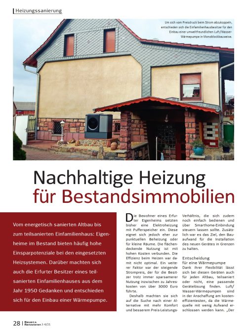 Der Artikel beschreibt den Einsatz der CHA-Monoblock-Wärmepumpe als umweltfreundliche Heizungslösung in einem Einfamilienhaus in Erfurt. Die Wärmepumpe nutzt kostenlose Energie aus der Umgebungsluft und ist aufgrund ihrer speziell geformten Ventilatorblätter sehr geräuscharm. Sie kann auch im Sommer zur sanften Kühlung eingesetzt werden. Das gesamte Heizsystem kann mit dem Bedienmodul am Gerät oder per Smartphone oder PC überwacht werden. Die Investition in diese umweltfreundliche Heizungslösung ist langfristig lohnenswert.